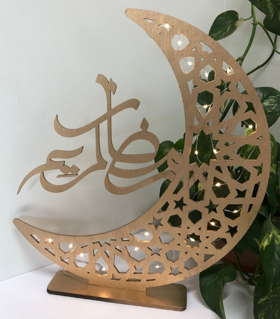 Verleihen Sie Ihrem Raum mit diesem goldenen Ramadan-Kalligrafie-Helal-Ständer einen orientalischen Touch.